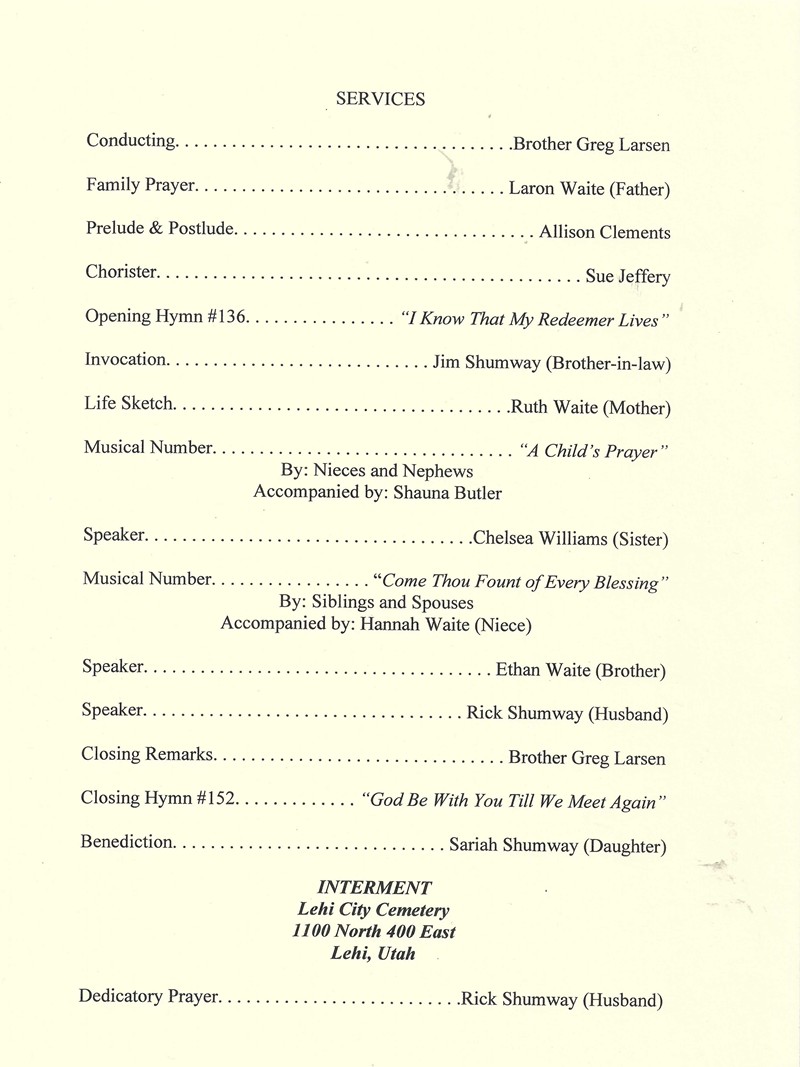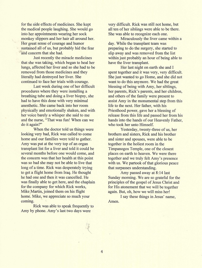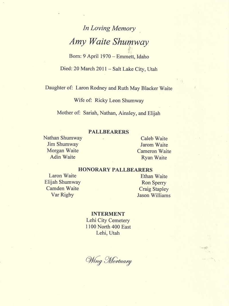 Funeral Services for Amy