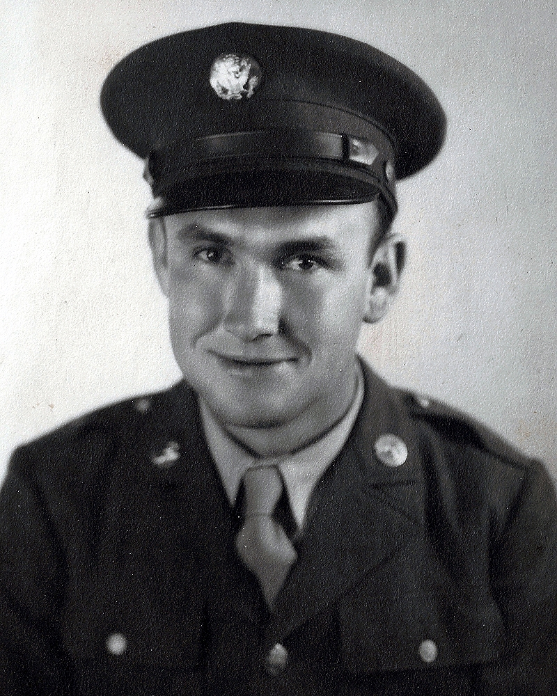 Inducted 5 August 1943 in Salt Lake City, Utah. He was a tail-gunner in a B-17 bomber. He was killed on 11 September 1944 when the bomber he was in was shot down over Germany.