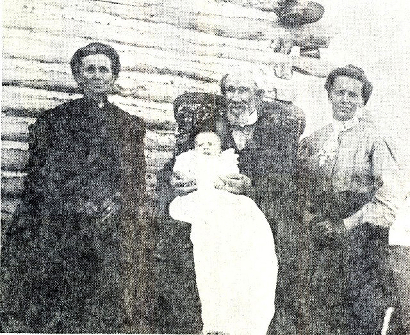 With snow yet on the ground in the Valley, they drove to their new 160 acre snow-covered farm to the little dirt-roofed two room cabin which was to be their home. No one had been living in the house during the winter into which, we presume the freighters had put their furniture several months before; but with no one having been around it was necessary, even in April, for them to shovel the snow away from the door in order for them to step down into their home.