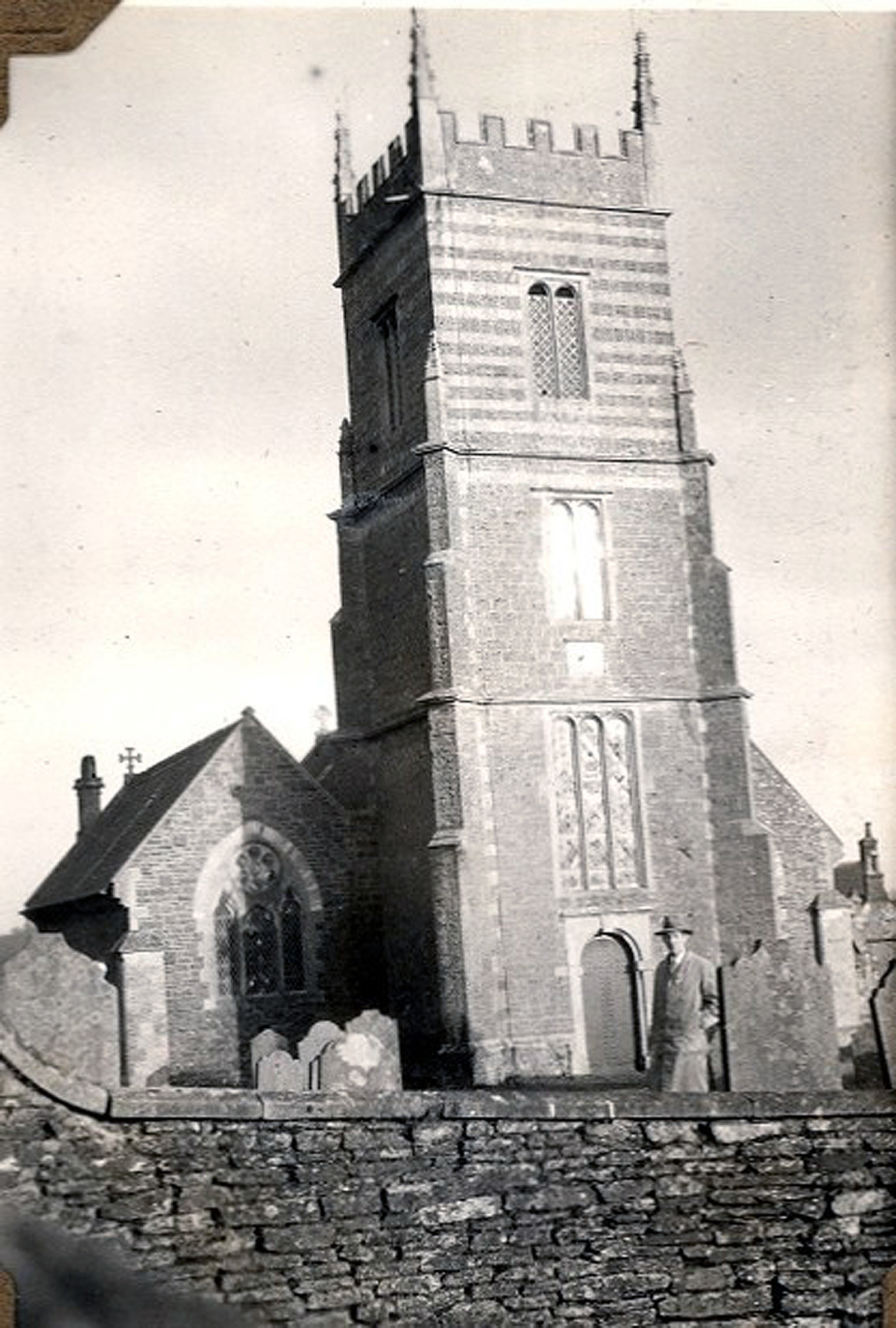 Me standing in front of the St. Augustines Clutton Parish church in 1930. Our ancestry were christened, married and buried here since 1695.