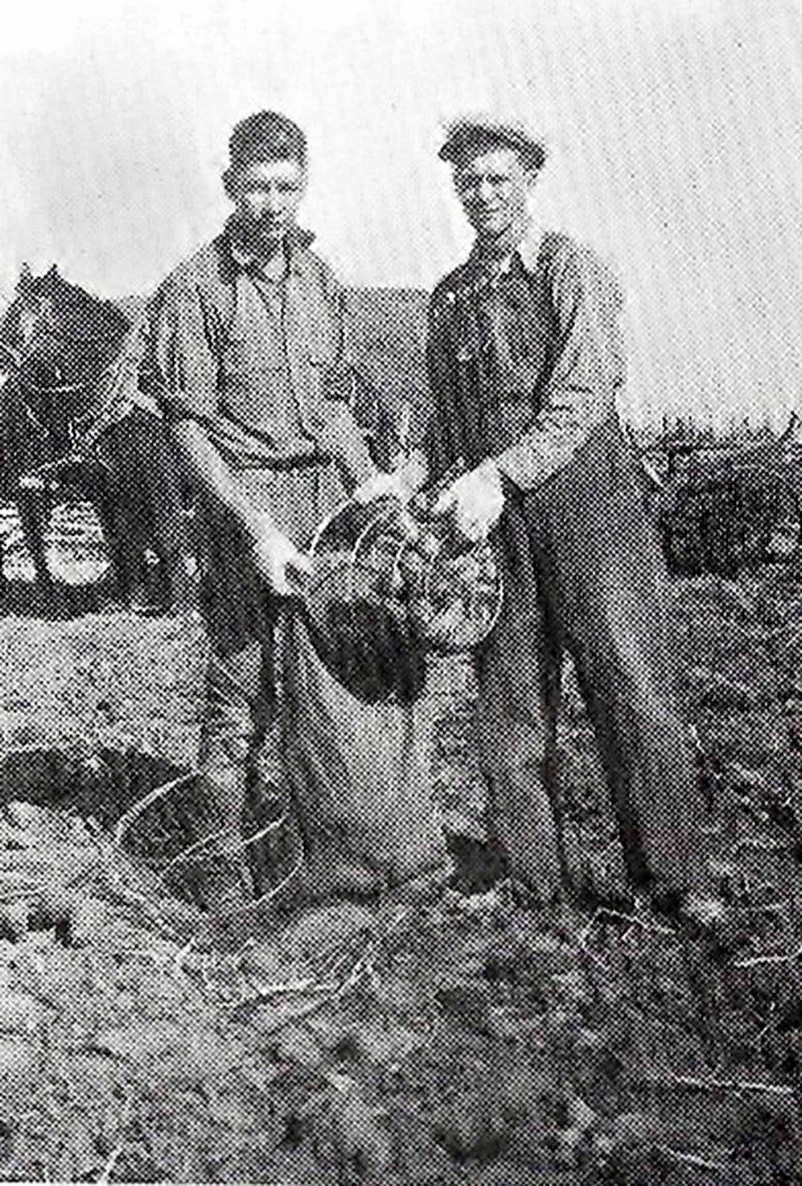 Dad was energetic to a fault, and one of the most valuable lessons he taught us was to work - - not only to work but to enjoy working. How empty life would be if one had nothing to do! At Dad's home there was always something that needed to be done. I don't recall that it ever occurred, however, it was common comment around our house that before Dad would have us idle he would have us go into the yard, dig a hole, fill it in again. Weeds and Dad did not live on the same farm. He was meticulous in this respect in his garden. The two were incompatible. It would irk him to no end to have a post in a fence to be out of line with the rest of them, and few folk could go into his garden and make a row or ditch straight enough for him. If we dug a post hole and planted a post and left it in any position other than straight up, we would have the job to do over again. He was an outstanding exemplar and teacher in these matters, but it is questionable that any of us acquired his proficiency.