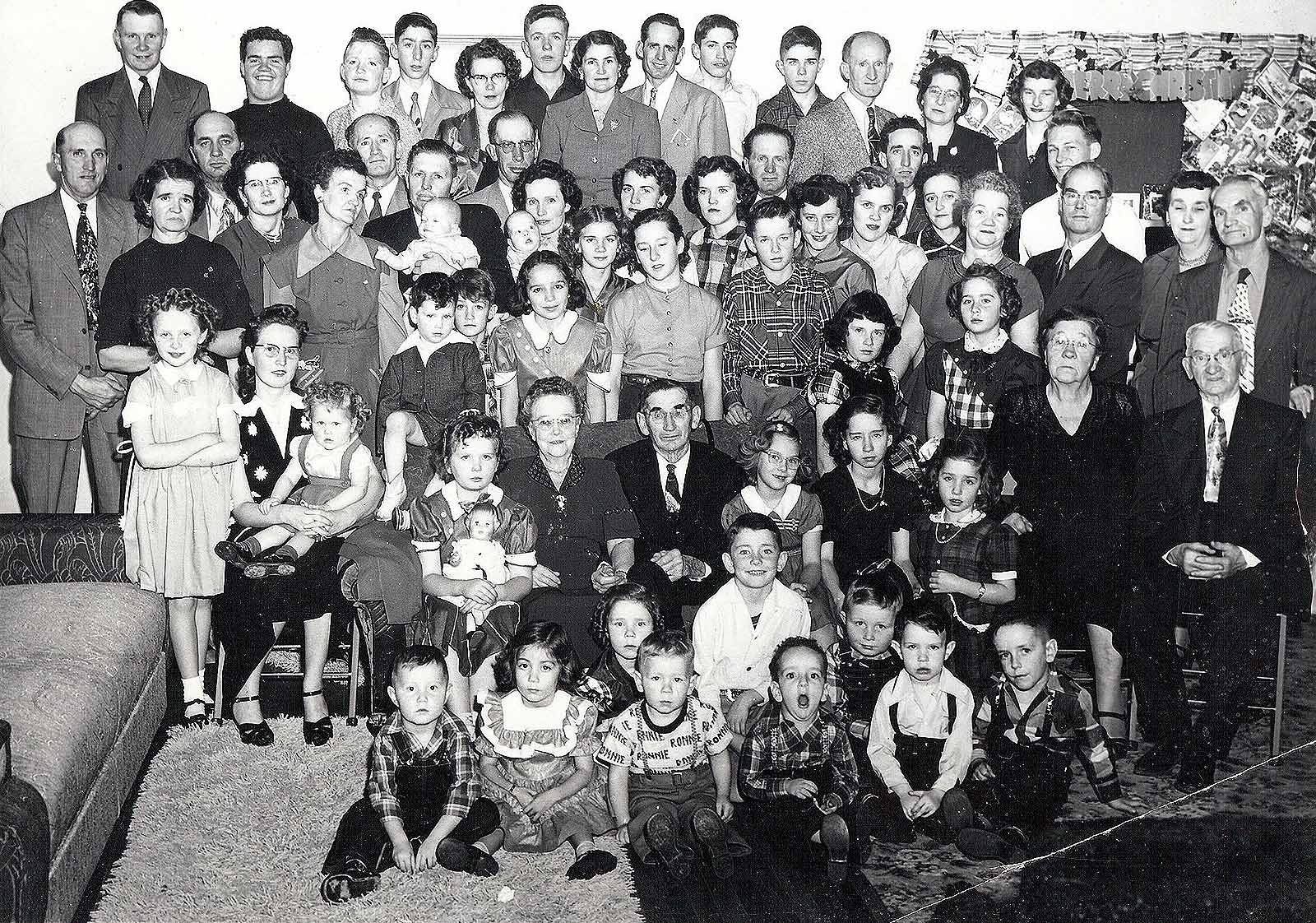 Dad was strict and he had our respect. We learned to do what we were told when we were told to do it. Most of us remember well a few paddlings probably because we deserved them, but really Dad did very little whipping. He didn't have to. We knew he meant it when we were told to do something. We often took advantage of Mother in our childish ways but seldom of Dad. We all felt easier in doing things when he was not around, and we were more ourselves when he wasn't with us. This is a regretable thing to say and it seems ironic to say it of what we consider a very successful parent. Dad was well aware of this situation, and he felt hurt far more than we. As we got older, and as he became older, this - - almost fear - - diminished into almost naught, but he did retain our respect. He played with us as babies, but as we got older, seldom. When we were young and at home we seldom if ever went on a picnic or outing as a family unit. He wasn't a sportsman so never did we have the pleasure of a fishing trip or a hunting trip.