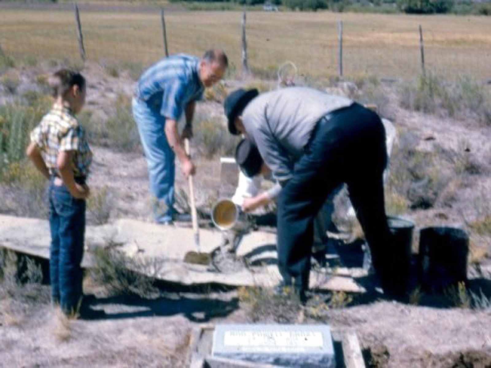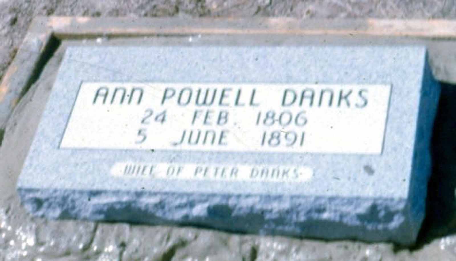 Family records tell us that the older Peter Danks with his wife, Ann Powell, first moved to Pennsylvania and that he passed away and was buried there. Mother Ann, eventually reached Almy, where she probably lived with some of her children in her older age. She was 85 when she passed away and was buried in the Almy cemetery at the side of her daughter, Mary Danks Loveday. Some of the members of the family organization will remember that in September of 1966, a reasonably good representation met in Evanston, Wyoming. We went as a group to place two headstones on graves in the Almy cemetery, one of which was to be at the head of the grave of Ann Powell Danks born 24 February 1806 and who died 5 June 1891. While the grave originally had a wooden marker and the mound was still sufficiently evident as to where the grave was, the marker had fallen over with age. There was no problem in identifying where the headstone should be placed; however, we contacted Lyman Brown, the sexton, who had a map of the lots in the cemetery and confirmed the spot.