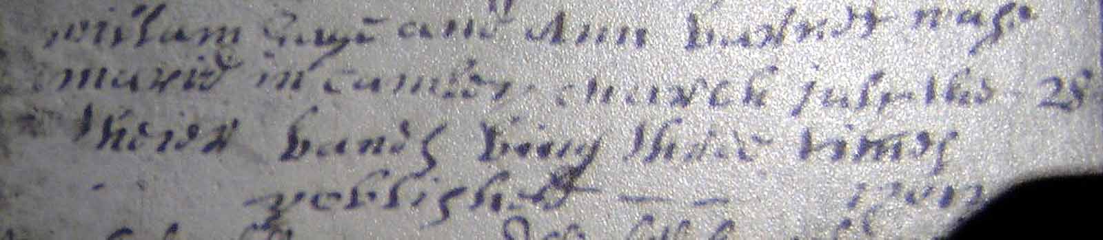 The entry reads, 'William Sage and Ann Barnett was married in Cameley church July the 28 whose banns being three times published' Ruth Blacker Waite