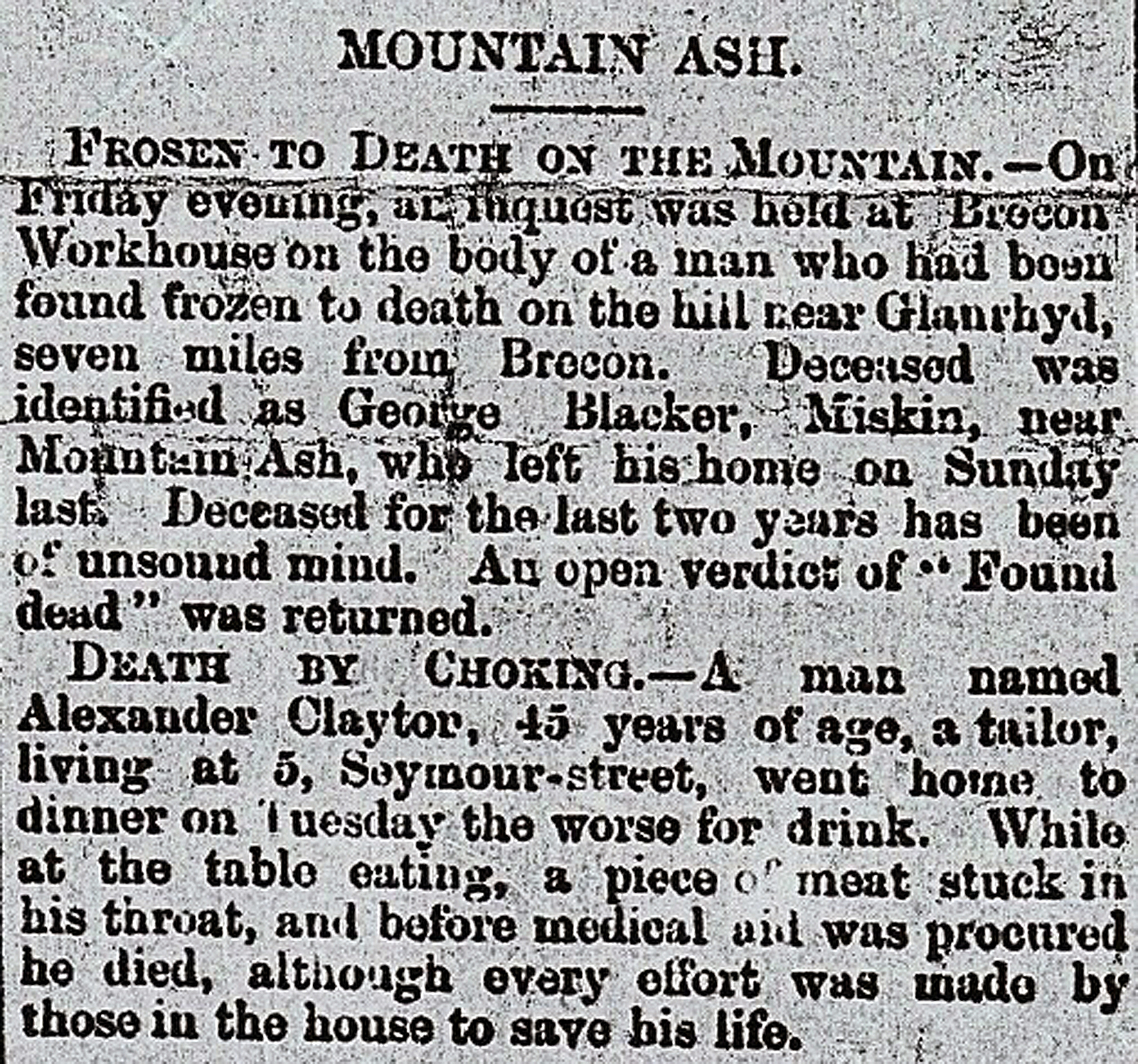 There is even less information of the Lovedays after their arriving in Mountain Ash than we have of the Blackers. The little history we know of Isaac Loveday is that he was an agriculturist all his life. He was born in a south England county, Wiltshire, which was then - and still remains - primarily a rural area. There is no reason to believe that Isaac ever owned a farm in England nor Wales. Landowners in England in this time was rather a 'rare breed'. The common man was not so fortunate.