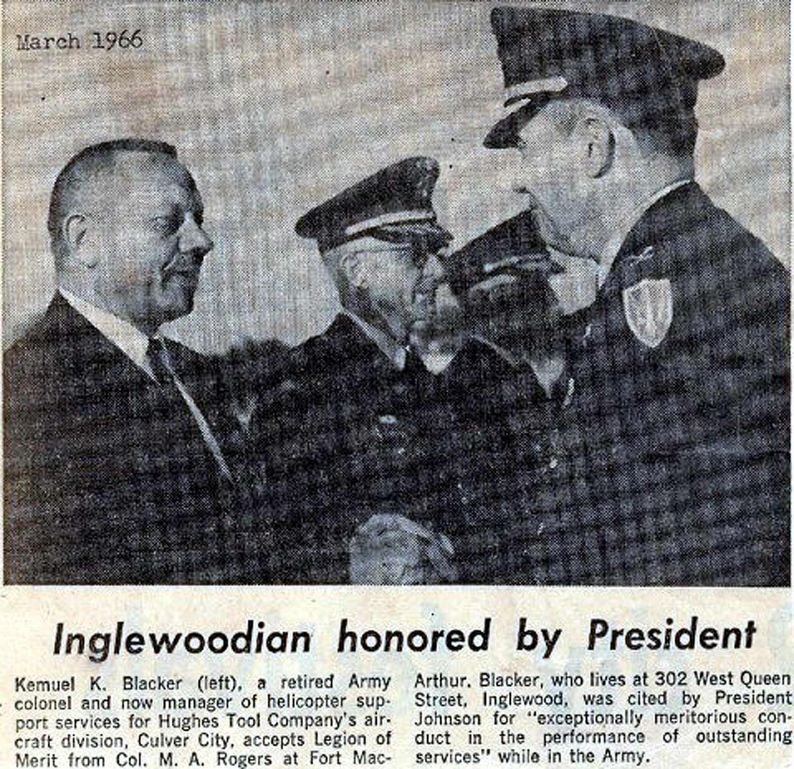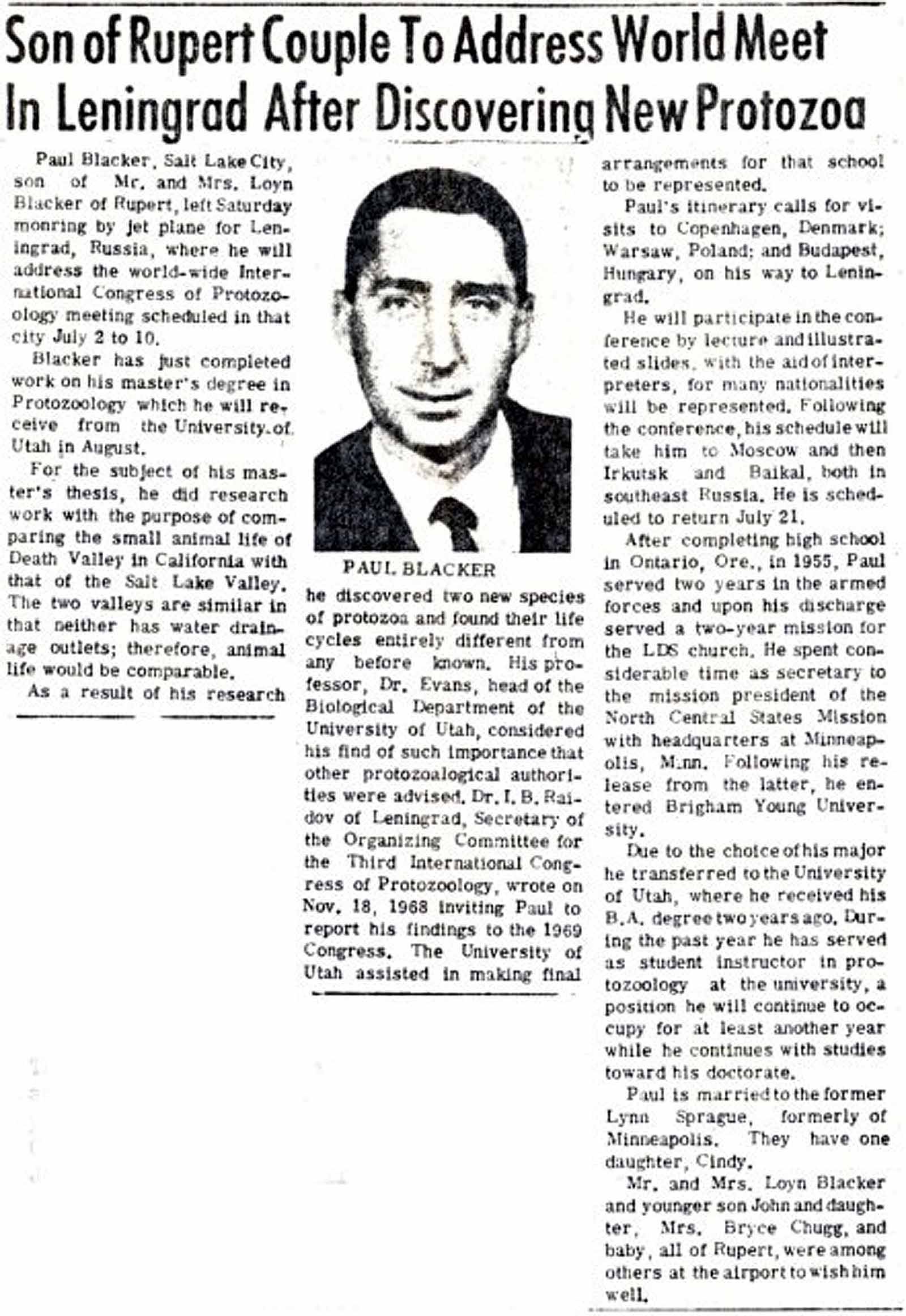 Survivors include a son, Dr. Kay Blacker, Mill Valley, Calif.; a daughter, Mrs. Ronald (Ann Marie) Astle, East Millcreek; seven grandchildren and a stepmother, Mrs. Edith Hill Cook, Salt Lake City.