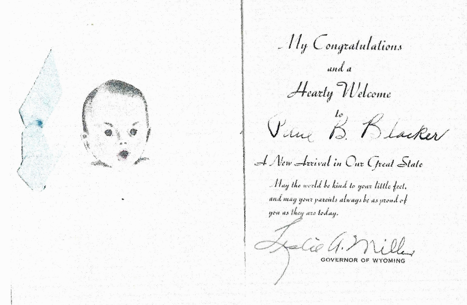 This is a copy of the welcome card that I received from Governor Miller in late 1937.
