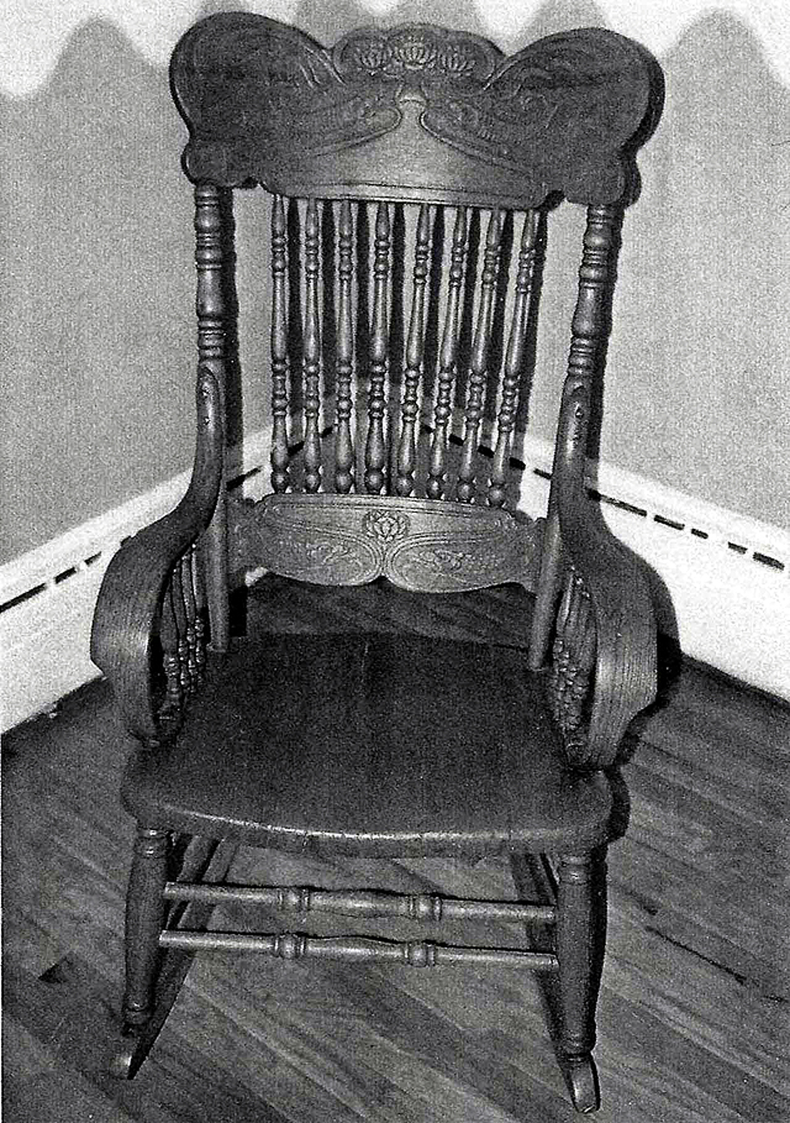 In 1899, she and a friend, Mary Morris from Evanston, decided to take a trip back to England to visit family and friends. They had a wonderful time, and Harriet purchased a beautifully carved rocking chair to take back to her home.