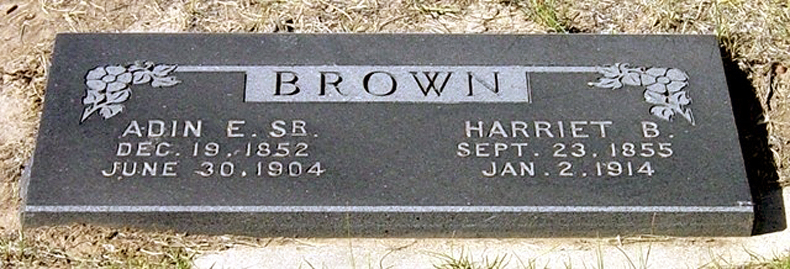 Much information concerning my mother's history of Adin Ebed and Hannah Hariet Bower Brown, is included in her history of their son,and her father, Herbert Brown, entitled Within the Walls of Home. However, at the risk of duplication, I feel some of this information should be repeated, in order to round out this very short history. At this point, while talking about their children, it should be stated that they lost some of them through death. Their fifth child, Maud Mary, died August 21, 1881, when she was about six weeks old, and was buried not far from their first home, which I understand was built near the road. Hers was the first grave in what is now the Almy Cemetery. Not long after, her grandmother, Hannah Clark Brown was laid to rest near her. Adin's and Hannah's oldest child, Martha, married William Nisbett but sadly died March 10, 1894, just after the birth of their first baby, Harriet Isabella. About two months later on April 7, 1894, the baby also died. William Nisbet married another young woman, who also died at the birth of their first baby, and they are buried next to Martha.