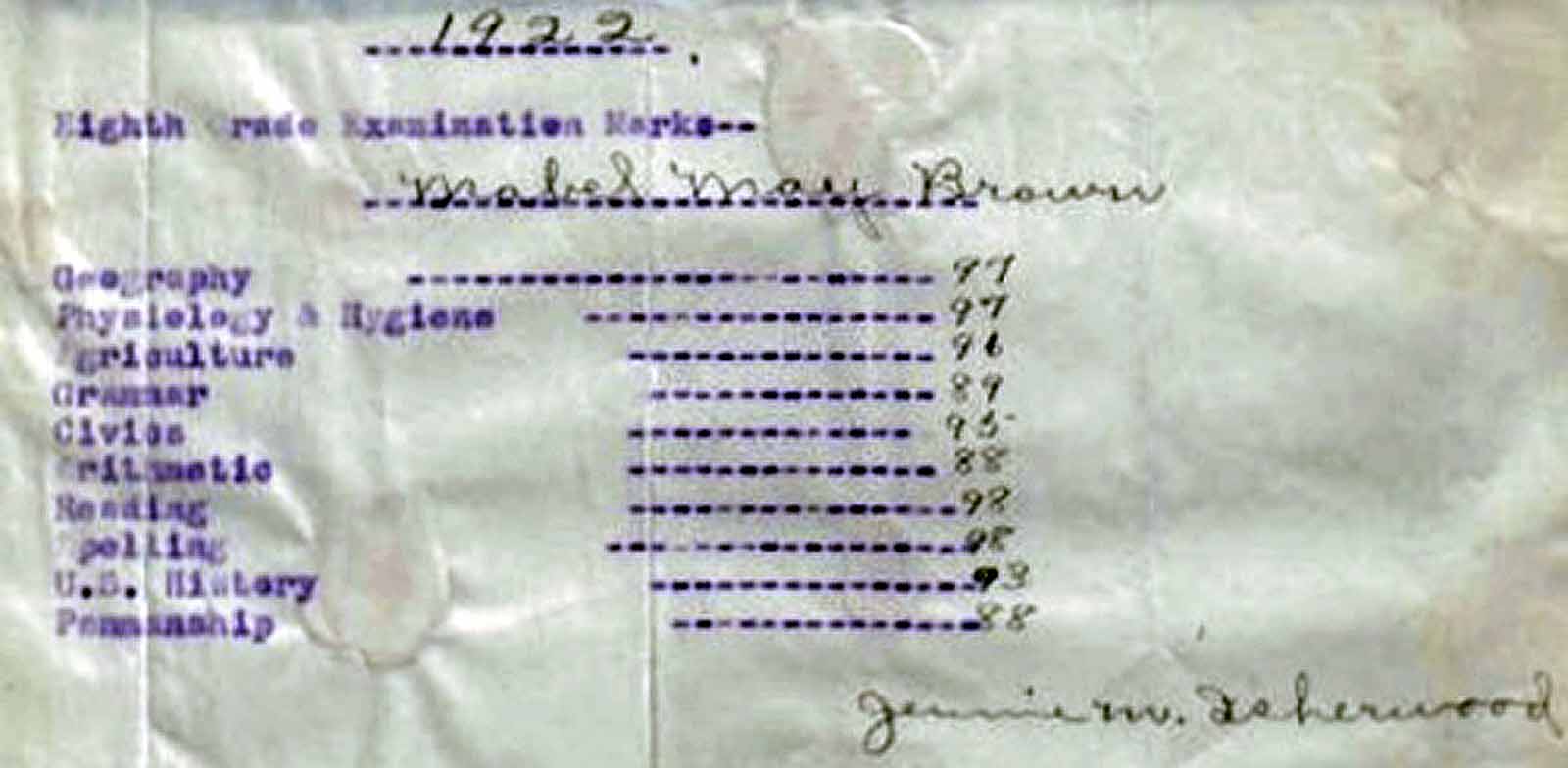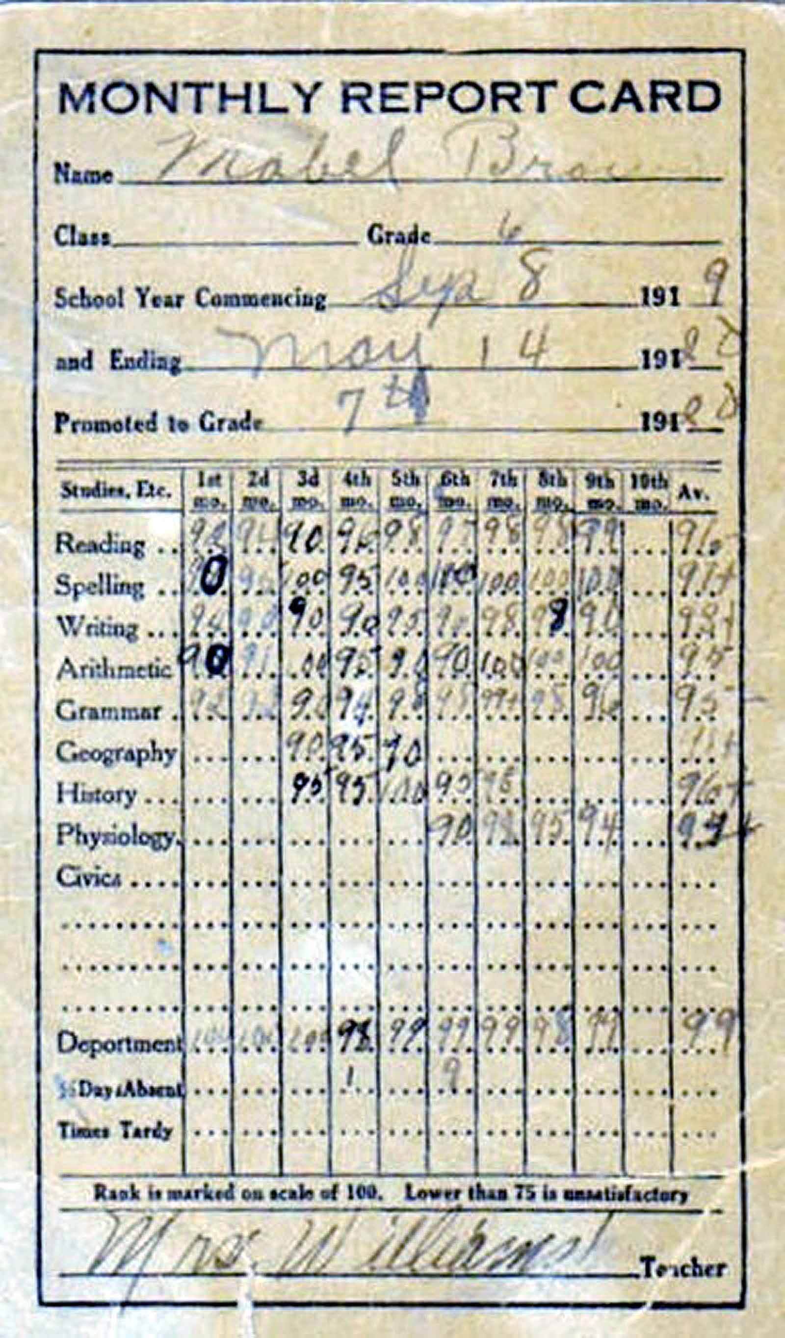 My first teacher was Myrtle Beard, and she taught all eight grades. She was not much older than some of the larger boys in the 8th grade.