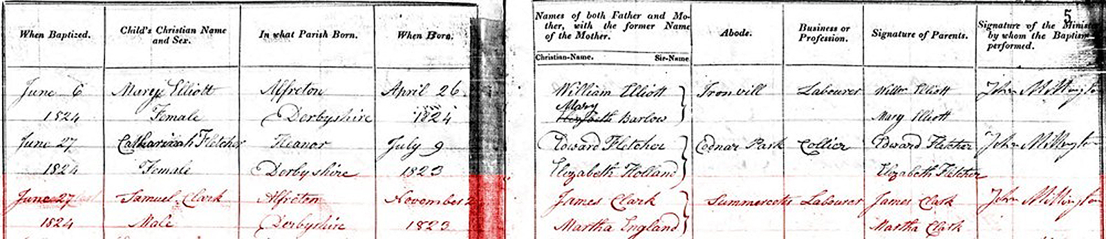 Apparently James and Martha Clark left the Church of England and joined the Independent Chapel of Riddings. Their next child, Samuel, was christened there in 1824.