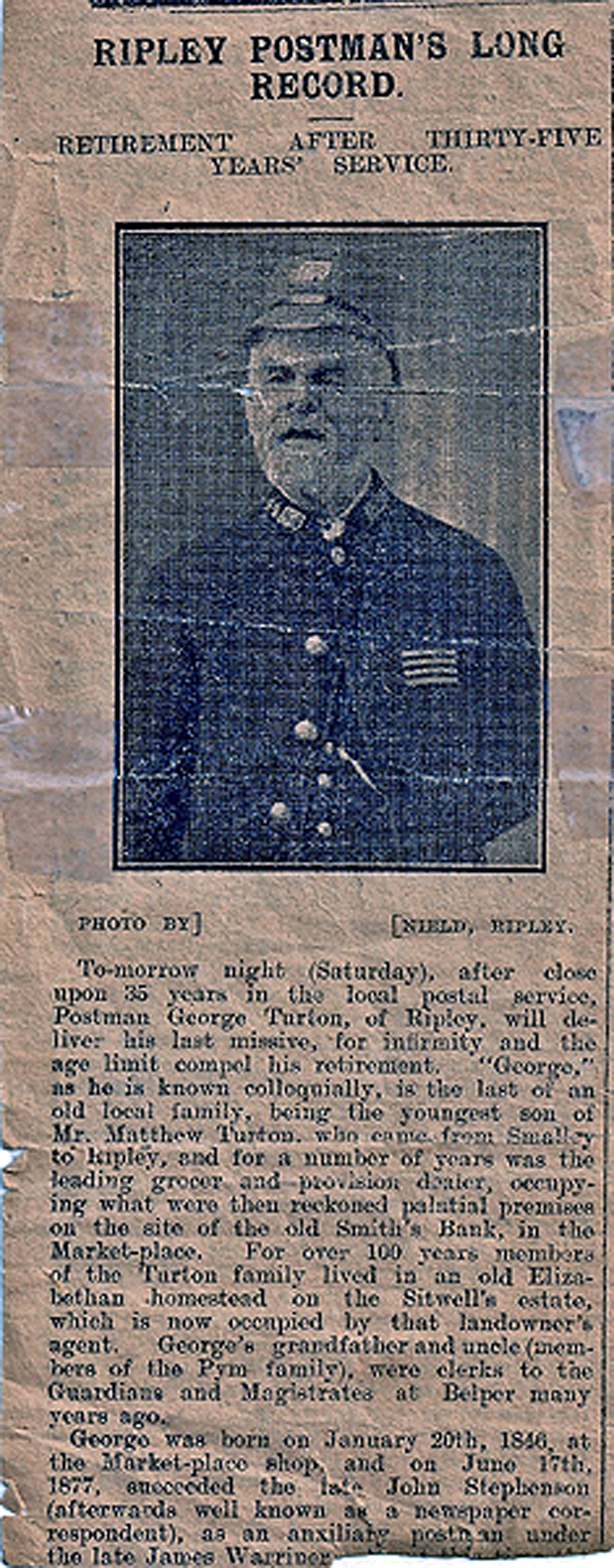 Newspaper article about George Turton's retirement