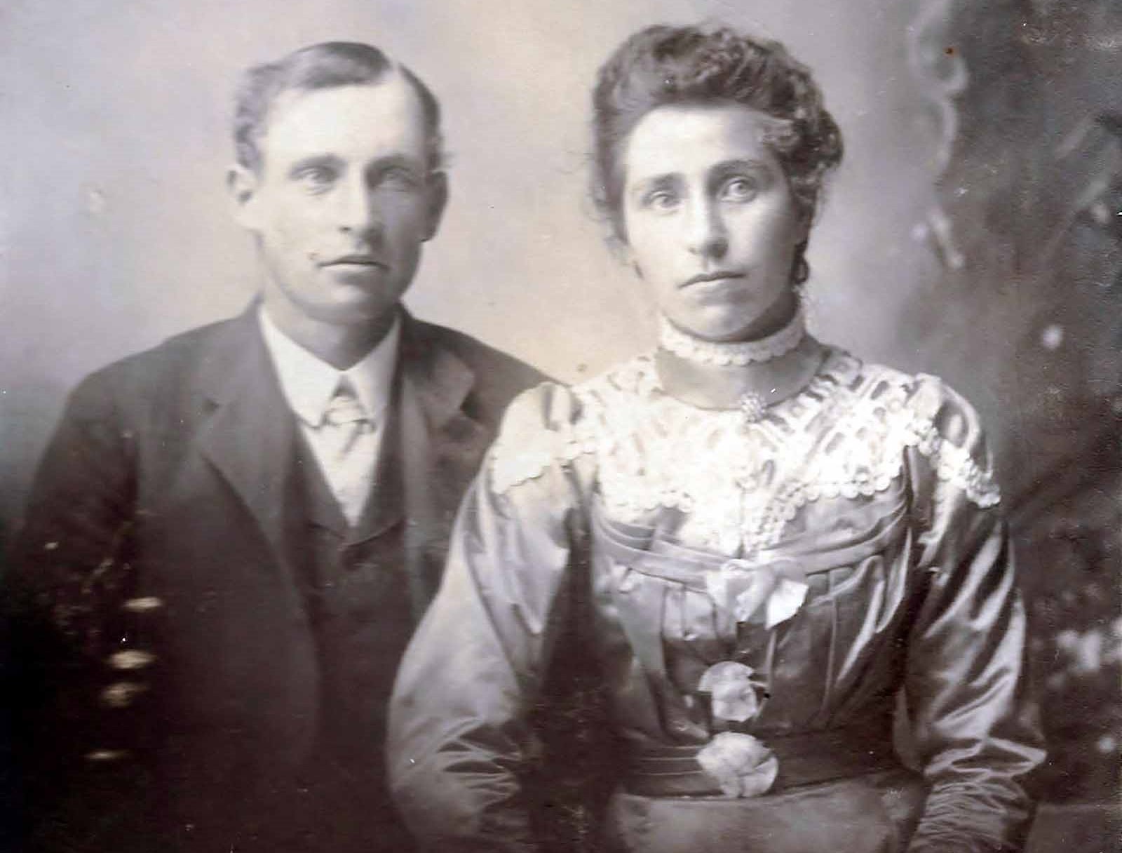 The years passed, and somehow, somewhere, Mother met the man who was to be my father. Since I wrote that sentence, I've sat and wondered why I never asked one or the other about their first meeting. I wonder if it could have been in Almy, Spring Valley, or at Hilliard, as my Grandmother Brown had a homestead about three miles from the home of the Godbers. I don't know how long they went together before they decided to get married. Spring Valley was a mining town several miles south and east into the rolling hills from Almy. Many of the Latter-day Saints moved from Almy when those mines closed down, in order to work in the mines in Spring Valley. I just imagine that Mother and her father had gone there for the winter. Be that as it may, Mother was married the 24th of December in 1900 to my father, Herbert Brown, at Spring Valley by the presiding Elder of the Spring Valley Branch, Edward Burton. Father was a member of the Mormon Church.