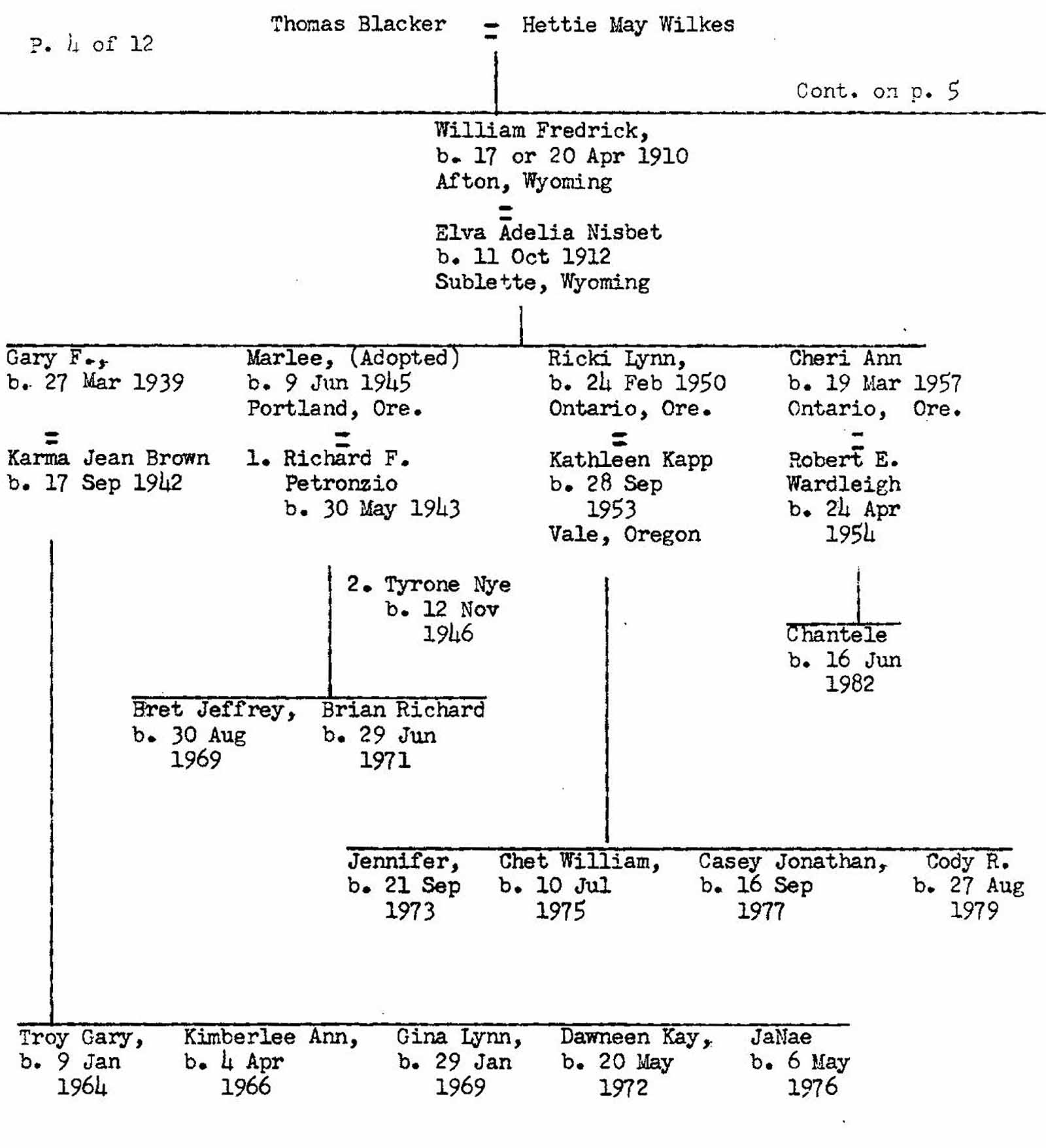 Family-history-wise, as many of you are aware, I compiled a history of my parents in 1971 titled, "Born of Goodly Parents, the Story of Thomas and Hettie Wilkes Blacker", a 125 page history bound such as is this history.