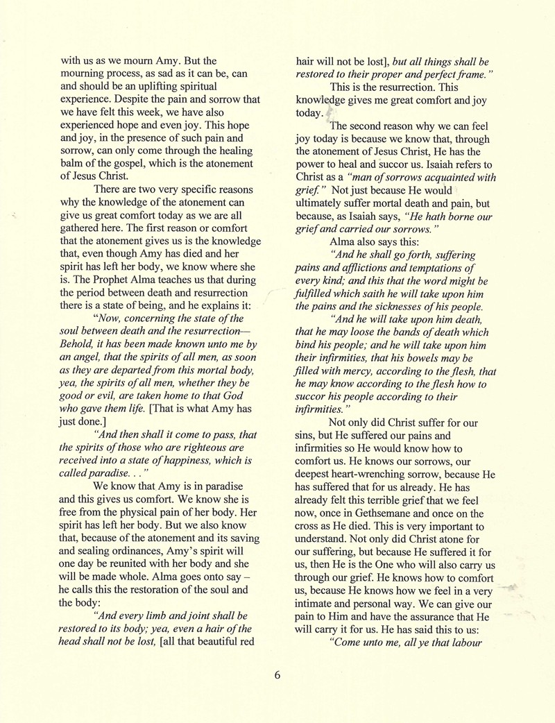 Funeral Services for Amy