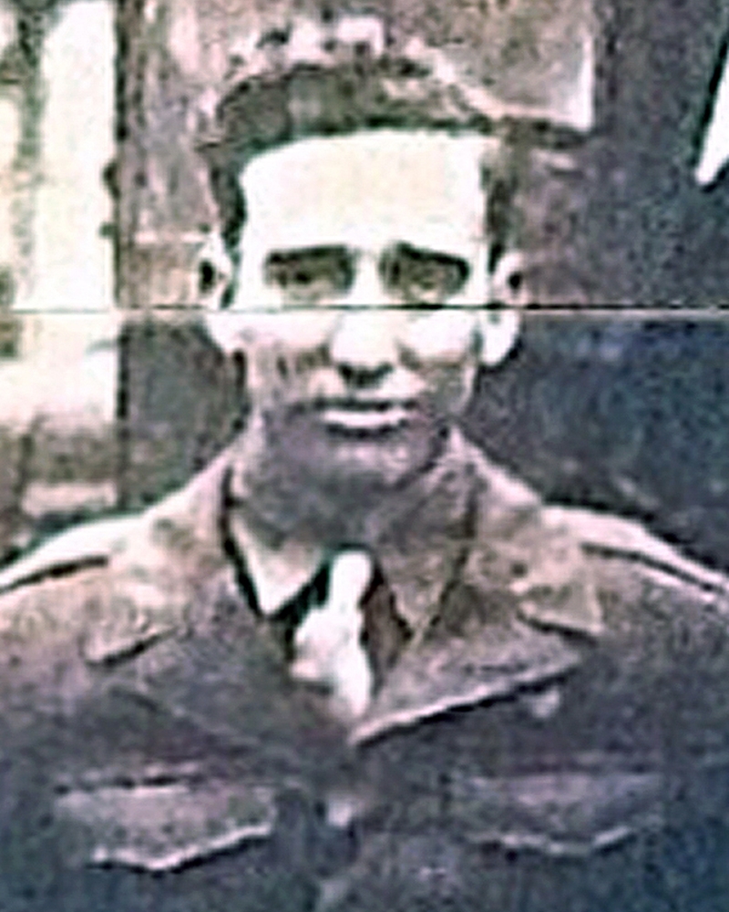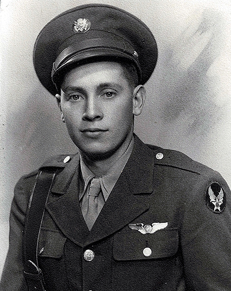 Inducted 5 August 1943 in Salt Lake City, Utah. He was a tail-gunner in a B-17 bomber. He was killed on 11 September 1944 when the bomber he was in was shot down over Germany.