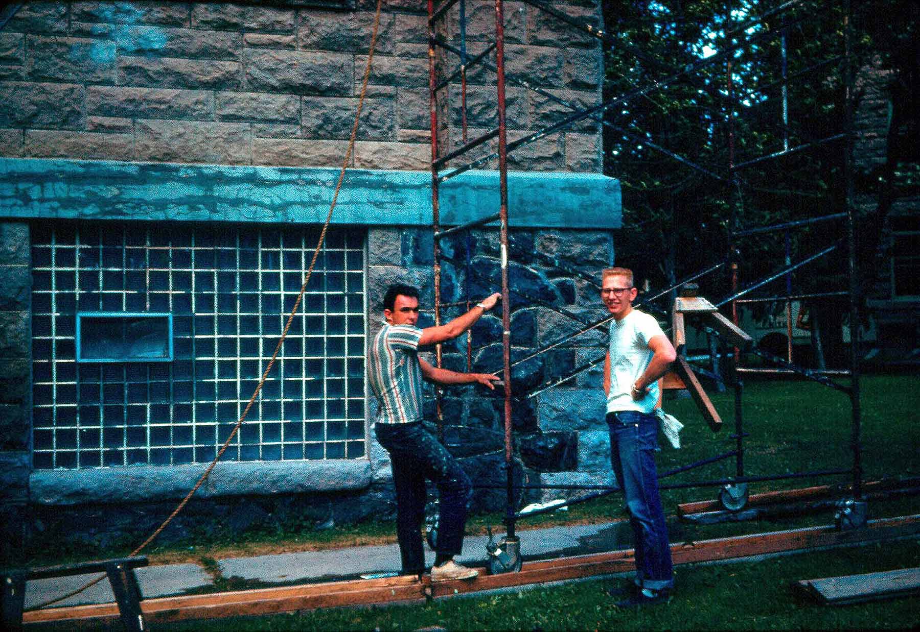 Ted Davenport and me painting under the eves of the administration building
