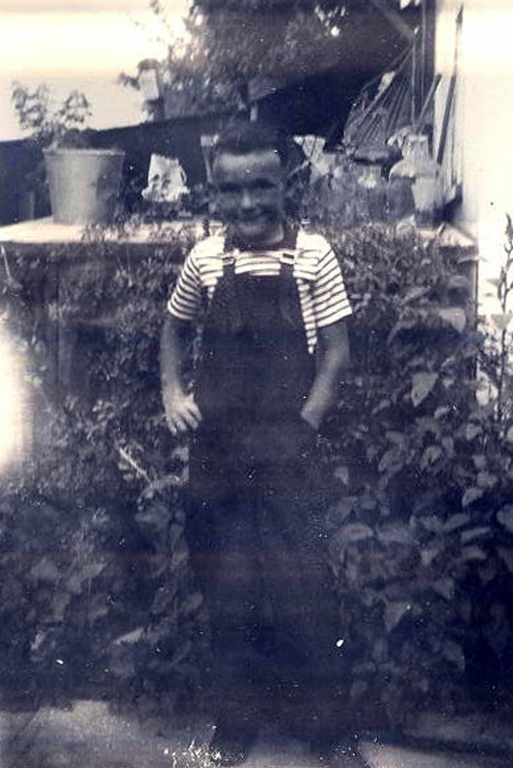 I started school at Homedale Elementary in the fall of 1946. I remember posing for a picture on the east side of the house just before I left for my first day of school. The school was three blocks west of our house. It was housed in a very old, large square, brick building that appeared to be in a permanent vandalized state. There were also three or four newer wooden buildings each of which housed a class. Across the street to the west was the junior high school. About three weeks after school started I became ill and had to stay home for 17 days. I remember vomiting tomatoes on my desk and the teacher frantically moving all of the other students out of the room.