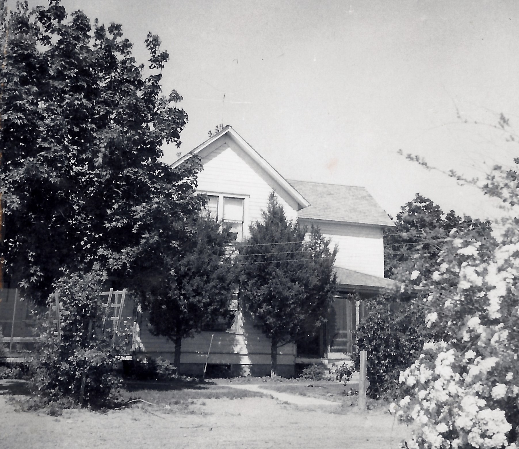 We planned to move back to Homedale when Dad was discharged from the service. Uncle Lee and his wife, Mary invited us to live with them. In May of 1945 Dad's brother Dan and his wife Fern drove us to their place. We lived with Uncle Lee and Aunt Mary until Mom was able to rent a small white house in town on 101 West Oregon Avenue from some people called Taylor. An older woman called Mrs. Rainy lived across the street to the north, she was friendly and helped us move in.