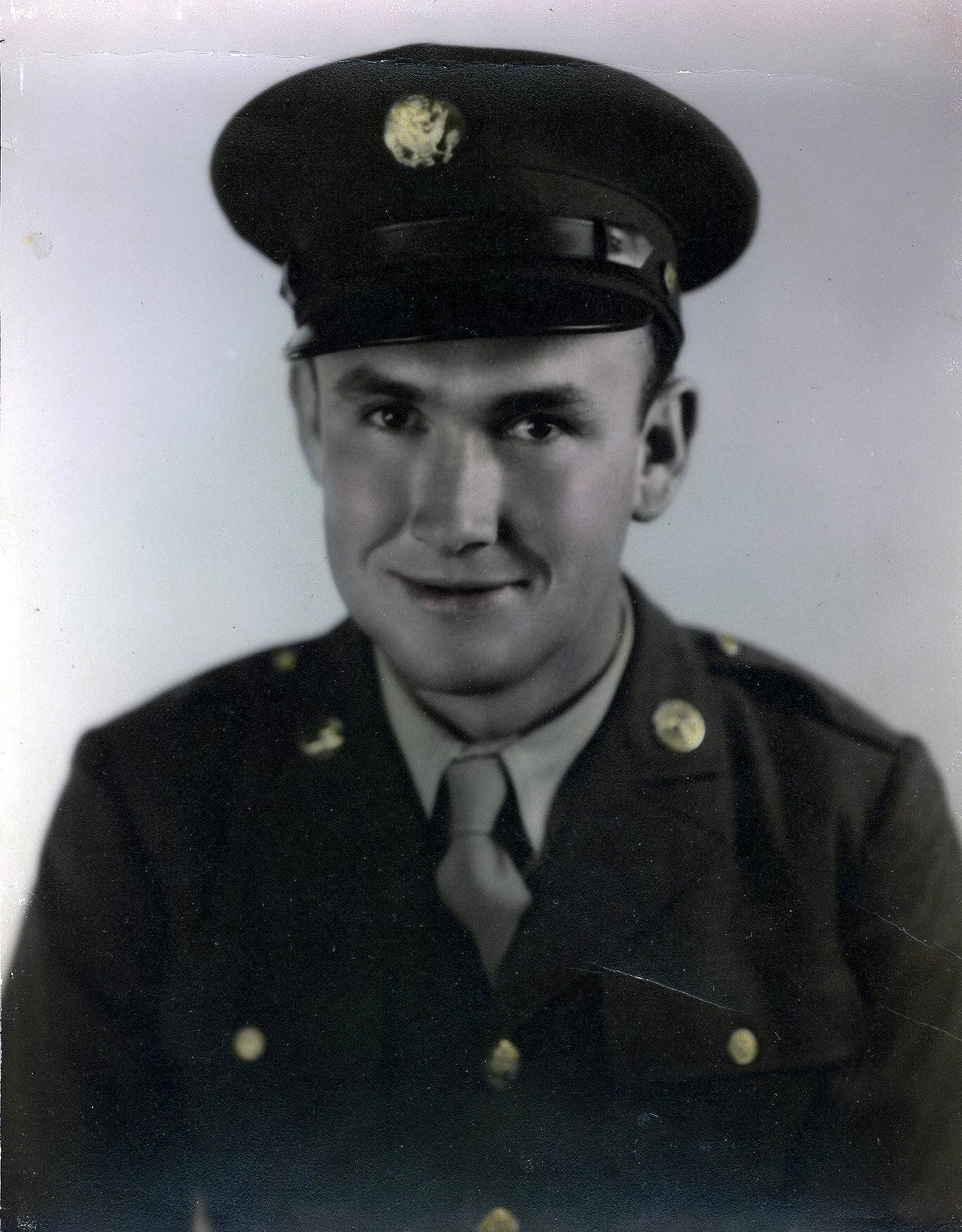In 1944 Dad was drafted into the Army. He was inducted October 25, 1944 and sent to Camp Walters in Texas. He had hurt one of his knees when he was young and it hurt him when he marched so he was transferred to the Army Air Core unit where he served as a quartermaster.