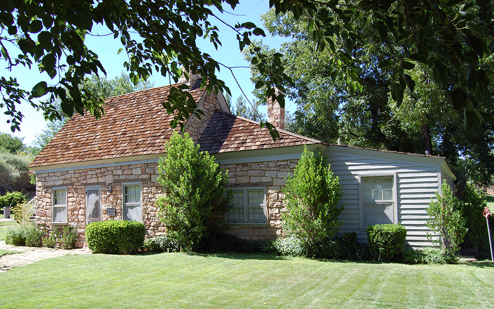 Up on the bench where children ran and played and nothing would grow for lack of water, a lush green golf course and country club now provide year-round entertainment. Just twenty feet from the old broom corn shop now stands a new fire and police station, Where the youth raced and rode wild burros, now elite riding stables and an arena provide their own form of entertainment: Albert's fields are covered with beautiful new homes and condominiums. Amid this oasis, still standing under the pink, cliffs, the old homestead is truly a landmark from another day.