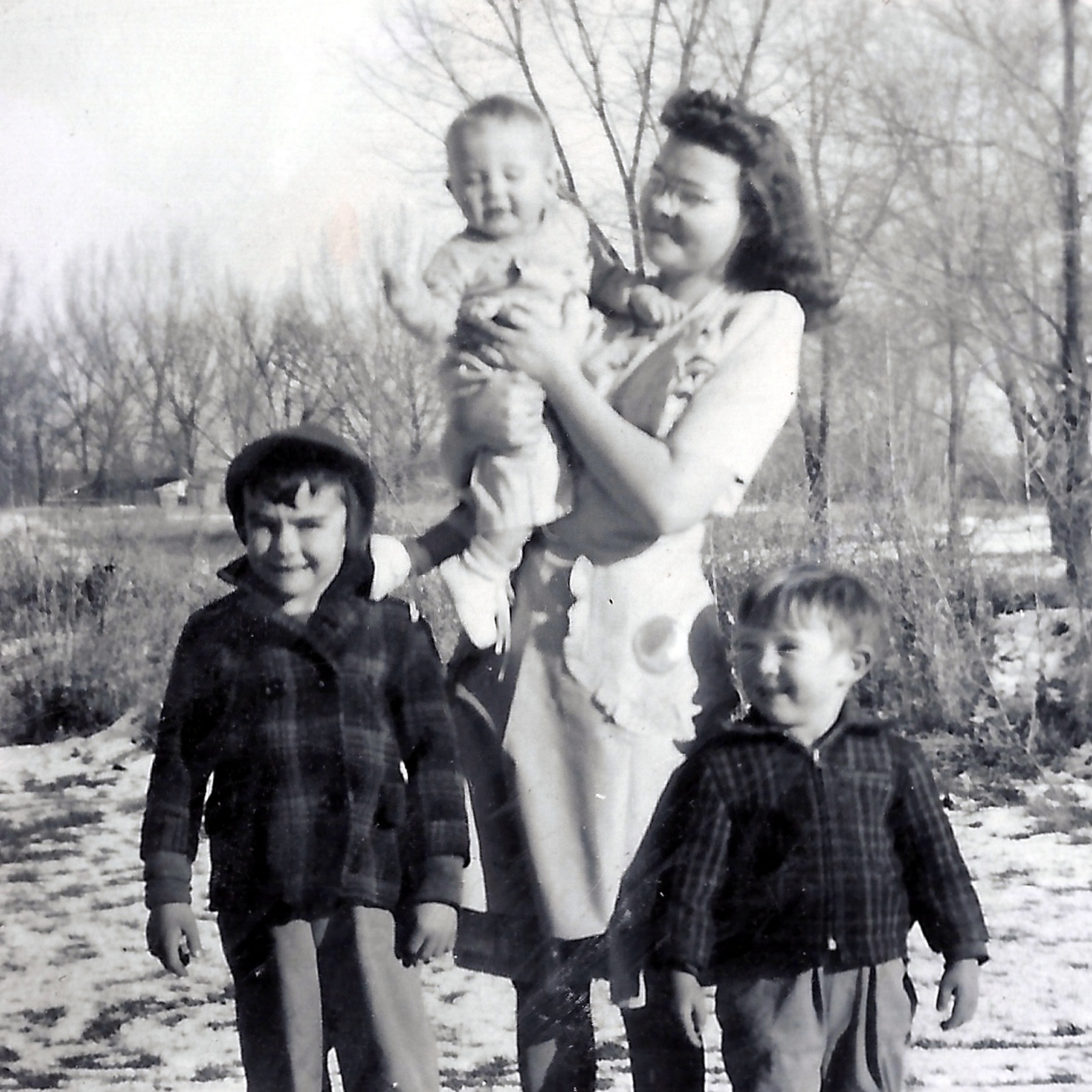 In a few days the doctor put me back in the hospital and this time he got things going, but I really had a hard time. The baby was twisted and trying to come wrong. It was the hardest and longest labor I had with any of my children. But finally my third dear little baby son was born on February 23, 1945. He was so precious and tiny. I was so thankful he was here and alright. How I wished his father could see him. I had someone send Rodney a telegram. The doctor asked me what I was going to name him. For months I had planned to name him Michael, but I told Dorthy what name I had picked out. She had a baby three weeks before me and she took my name. I could not believe she would do that, but she did. So now I had no name, I told the doctor I guess I would name him Jimmy. The doctor said, "Oh don't name him Jimmy or he will be so embarrassed if he ever goes into the service and they call out Jimmy. Name him James and just call him Jimmy." I really did some thinking that night and wished Rodney was there to help me. I finally settled on Richard Lee. When I told the doctor he said, " Now that's a real nice name, now that's a name." And my tiny baby started to look like a little Richard.