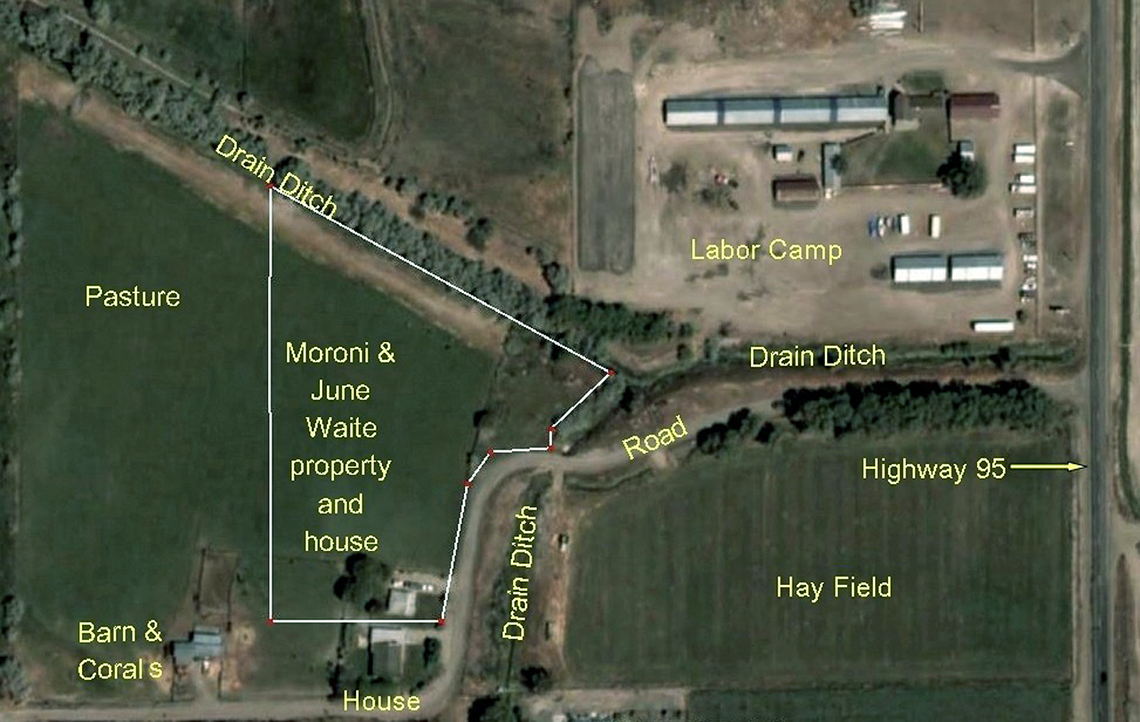 Soon after this Mac and June moved to Idaho and we all decided to buy a small acreage, south of Homedale, just south of the labor camp. There was probably about 20 acres all together, but in two different pieces divided by a drain ditch. The road and drain ditch run along the east side of the back piece where the well was. We both decided to build back on the piece by the well.