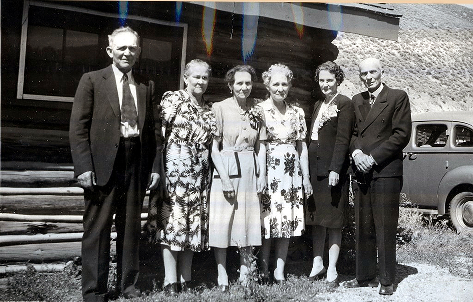 No housewife would find her lot easy who had to house her family of eight in a two room log house. The floors were of rough boards and these are not easy to keep clean under the best of conditions. There couldn't have been much floor space left to view with the furniture and eight pairs of shoes standing on it. Bed-down time was undoubtedly a challenge, for most of the children had to sleep on the floor. It so happened that the former owner had built a small shed, which technically was called a milk house, a short distance from the house to the north toward the corrals. This also had a dirt roof, but the roof was low and in envisioning how improvements could be made, the family decided that if that building could in some manner be attached to the house, it would make more room. Room was so badly needed, so planning and engineering were put to use and it was decided that if the roof of the milk house could be raised to the level of the roof of the house, and the several foot space between the two could be enclosed and roofed, the added section would supply at least a couple additional bedrooms. How soon this project was completed we have no way of knowing, however it is very possible it was not done for two or three years following their moving to the Valley.