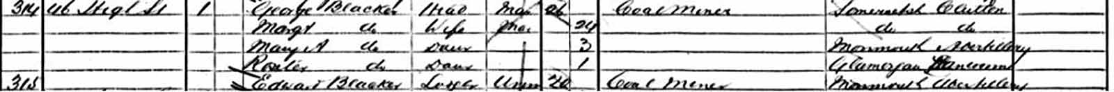 This image of the 1871 Mountain Ash census, shows George Blacker, age 26, his