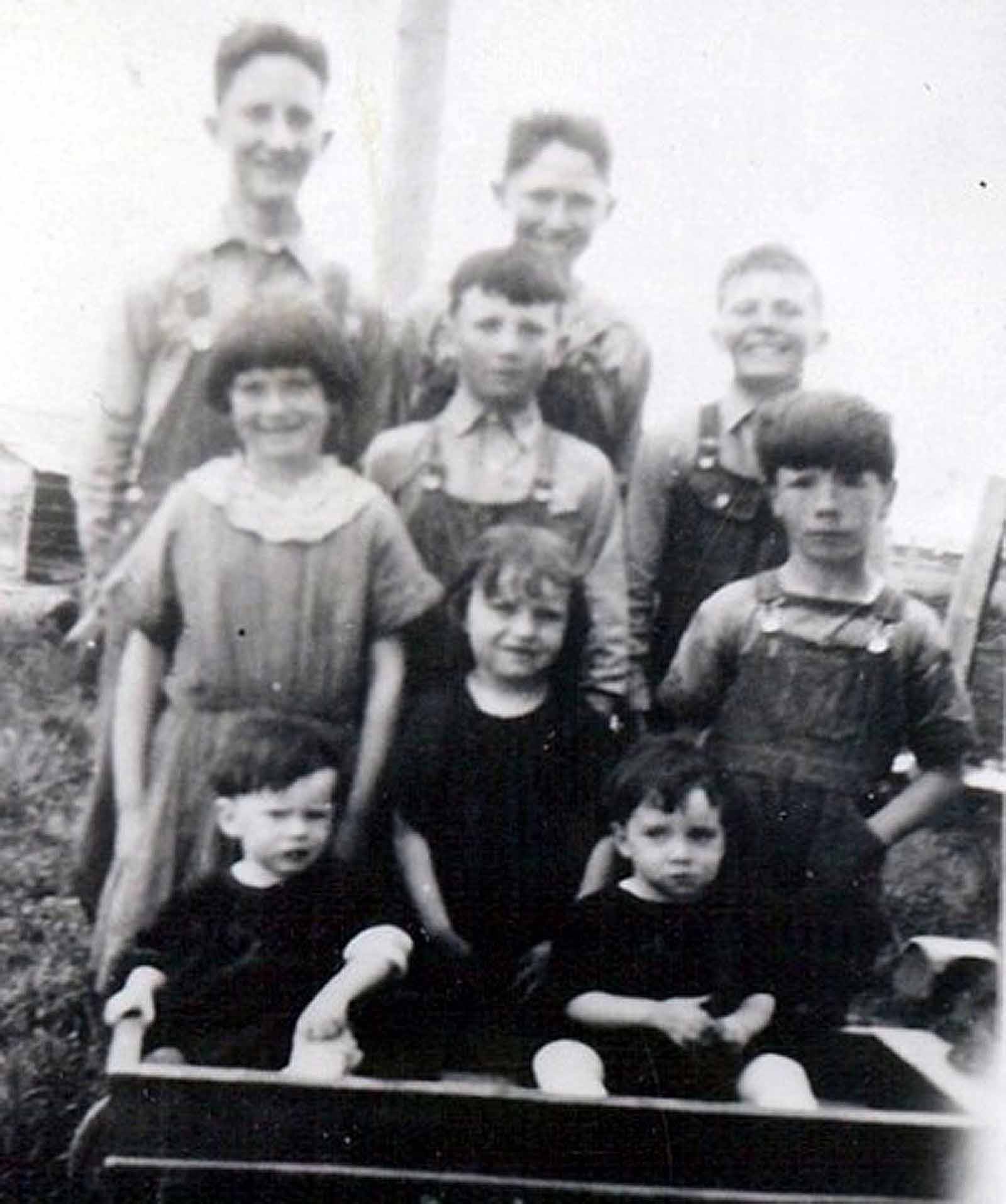 The writer's memory included the fact that miners fared better than farmers. Particularly did this appear so after labor unions became powerful enough to demand better working conditions, better hours and better pay which situation became effective following World War I which ended in 1918. It seemed that the remaining miners of the Blacker family always had beautiful, stylish cars. Invariably it seemed the Cumberland Blacker family took delight in big black sedans. Earlier Uncle George and Aunt Polly made their visits alone - that is, without children - however, of later years, their son, Hyrum, became their regular chauffeur on trips to their relatives. The shiny, black limousine was an attraction anywhere and seemed very much out of place when it was driven into a farmer's back yard and along side his buggy or wagon or even his Model T, but we kids loved the recognition and distinction that came with it.