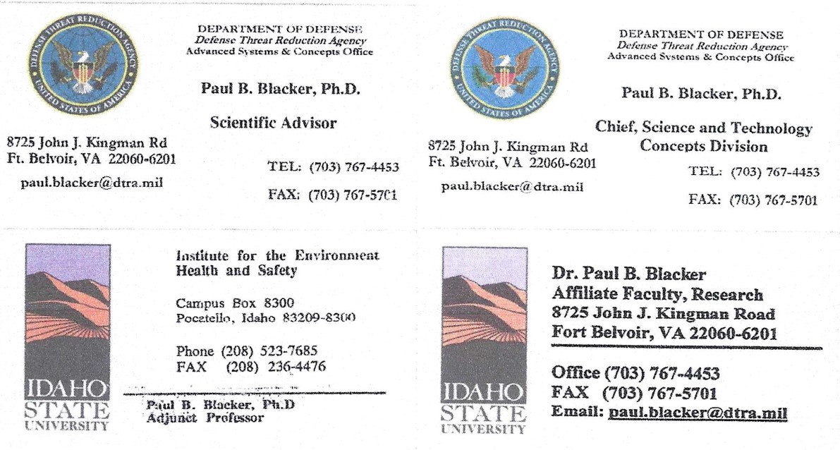 | 703-767-4453 or paul.blacker@dtra.mil Work | ||