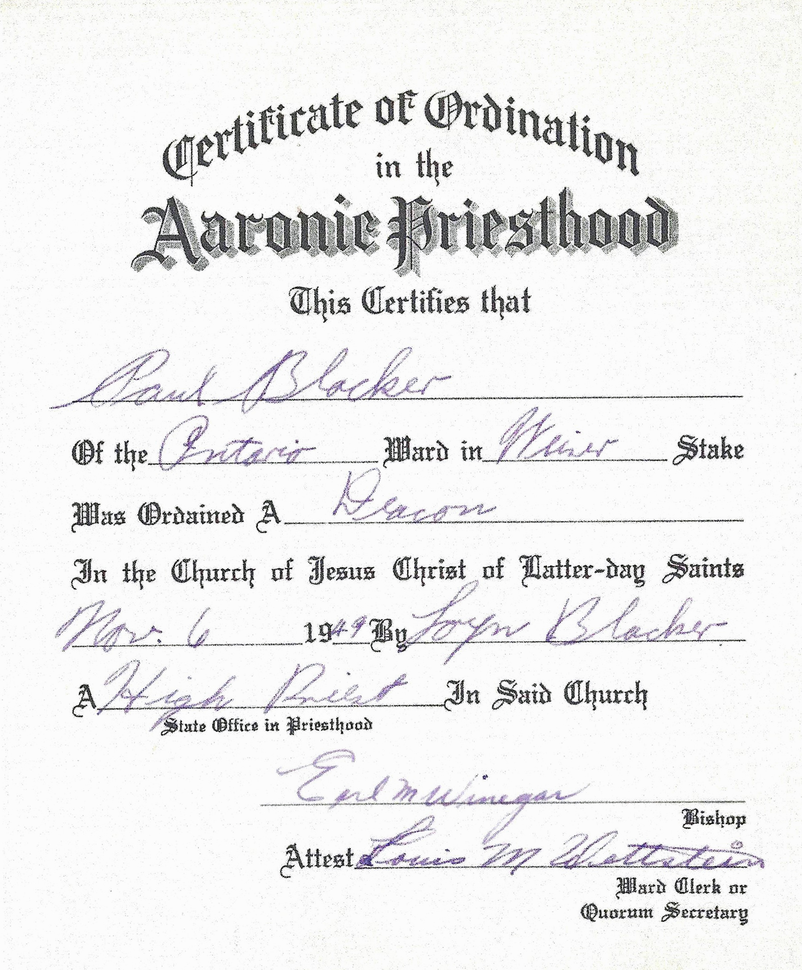 During my Aaronic Priesthood years I received seven individual awards for attendance - three of the five were for 100% attendance. I progressed through the Priesthood offices until I graduated from high school.