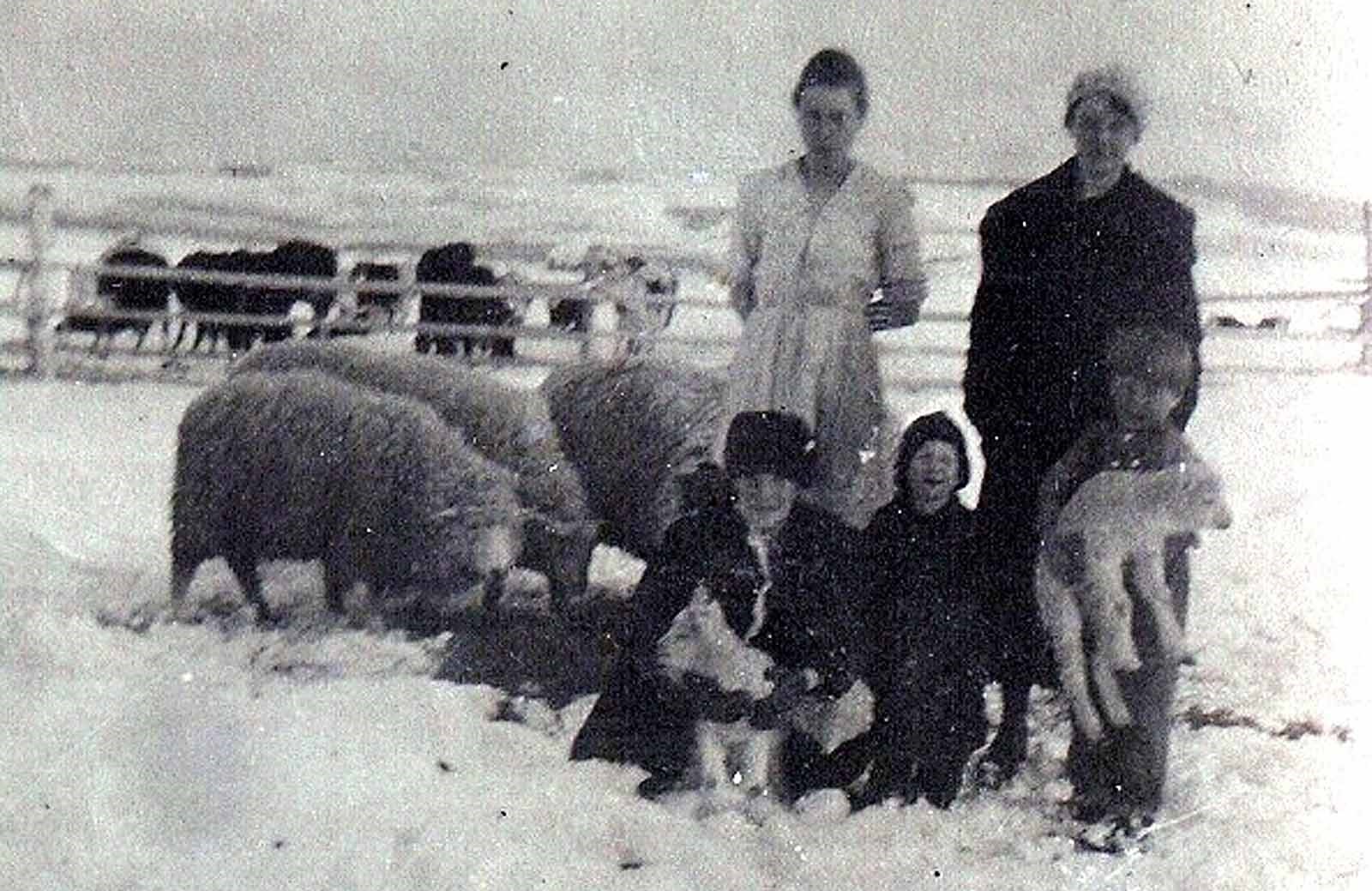 The winter of 1934 had been a very mild one and the snowfall was very light. As a result there was a water shortage the following summer. We worked hard to get the water to cover the fields, but there just wasn't enough. Day after day went by and the grass became drier and the ground harder. The fields were divided so the cattle would have enough to eat and we cut what hay we could. It was impossible to keep all our cattle so we sold to the market the best ones and the government bought the older cows and small calves. This was true of all the surrounding country. Many were shot because they couldn't be fed. This was especially true of sheep. Hundreds and hundreds were shot and put in a pile to rot. This at a time when the depression was sweeping the country and many of the animals would have provided food for people. We had some hay left over from the previous year and although we suffered a loss, it wasn't as hard as it was on others.