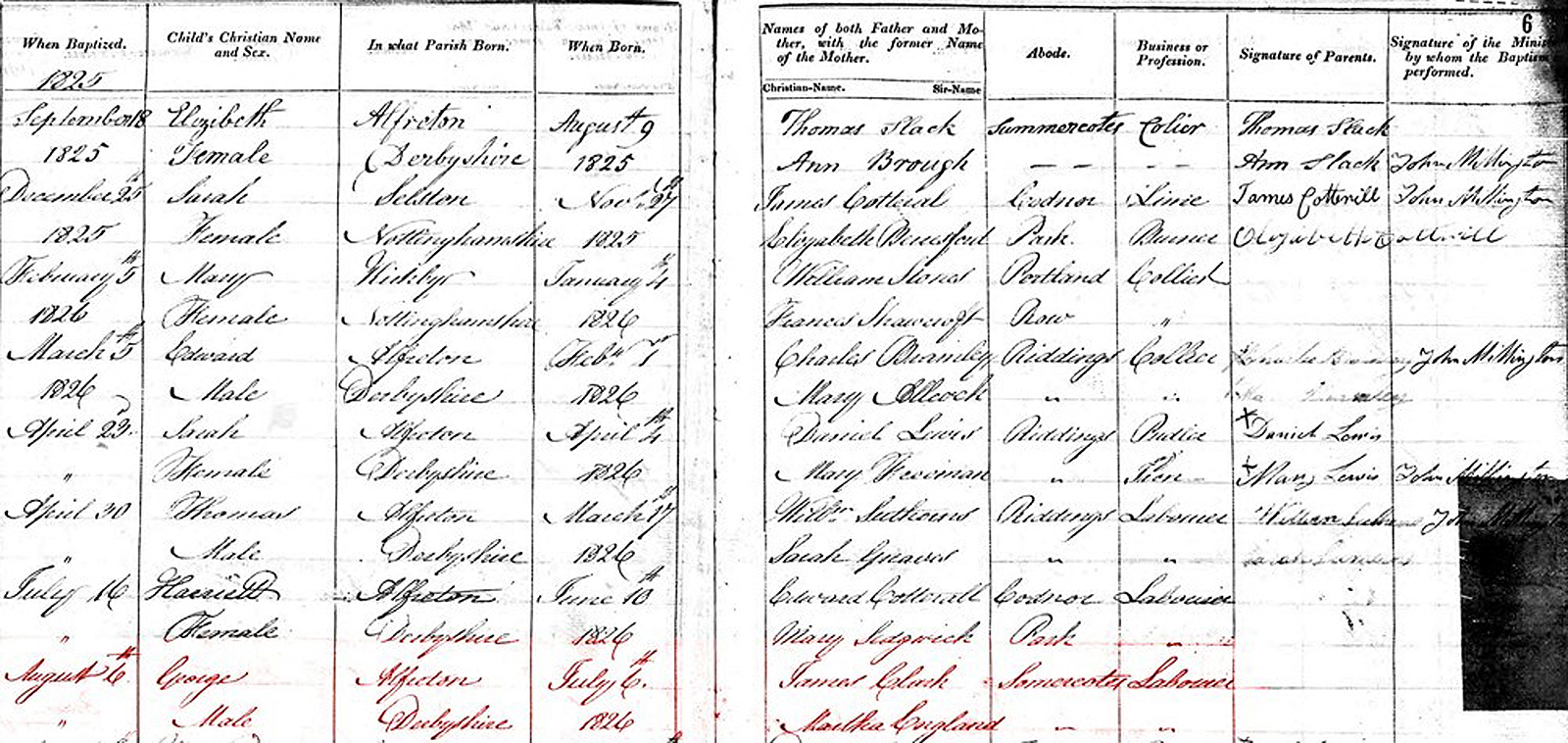 George, a son of James and Martha, was christened in the Independent Chapel of Riddings. The family was still living in Somercotes.