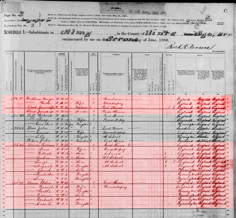 George and Martha Clark Woodhouse are in Almy, Uinta, Wyoming in 1880.
