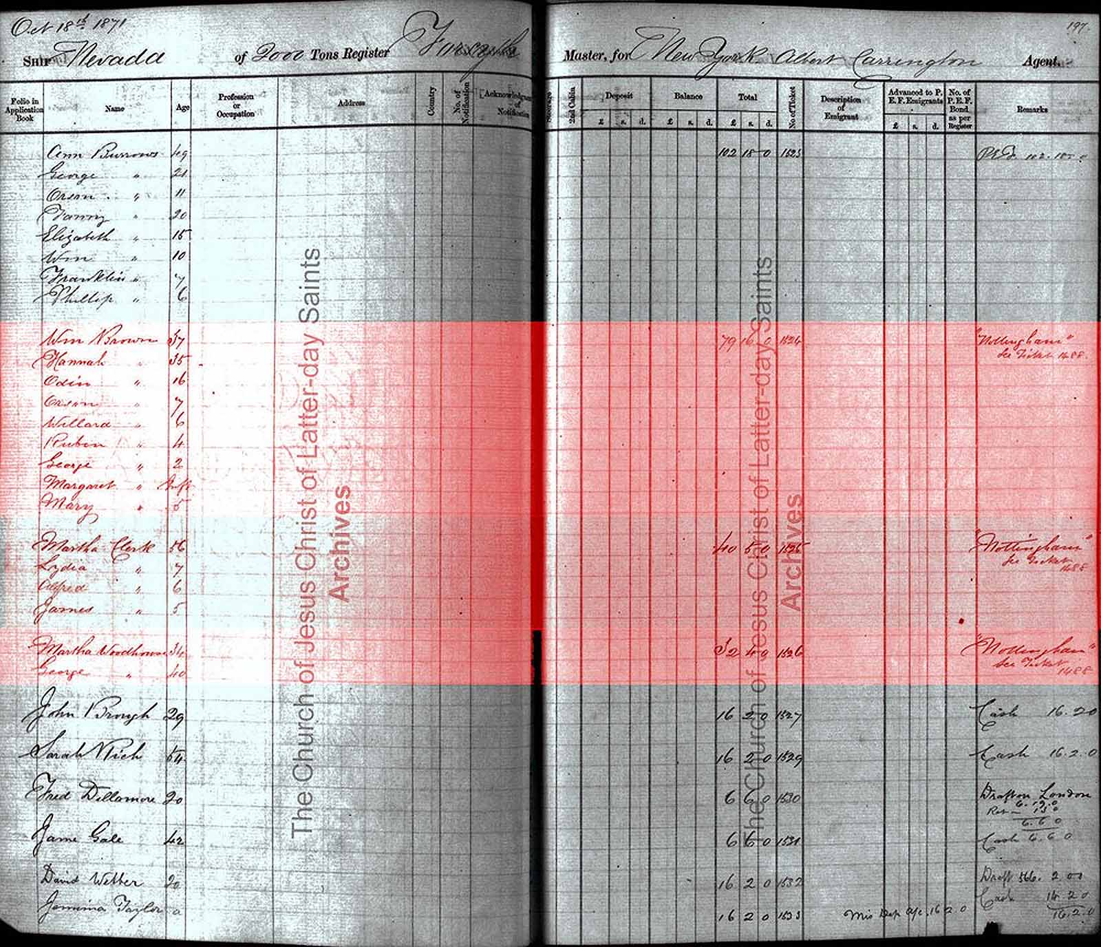 On 18 October 1871 William Brown and Hannah Clark with their children Odin (Adin Ebed), Orson, Willard, Ruben, George, Margaret and Mary left Liverpool on the ship Nevada.