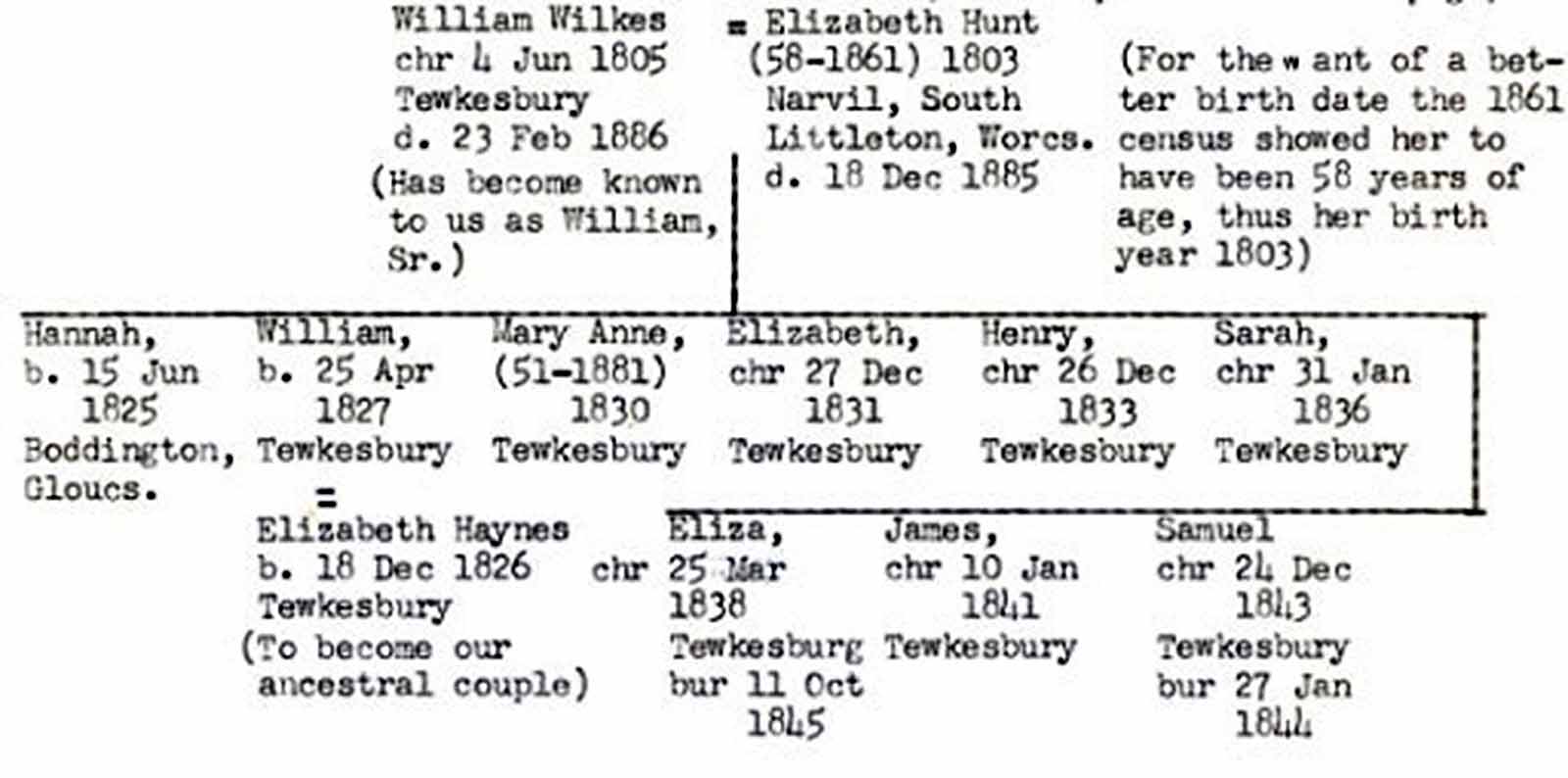 At this point in our story, we enter into a subsequent generation, with the marriage of William Wilkes and Elizabeth Hunt, as charted on chart 1.