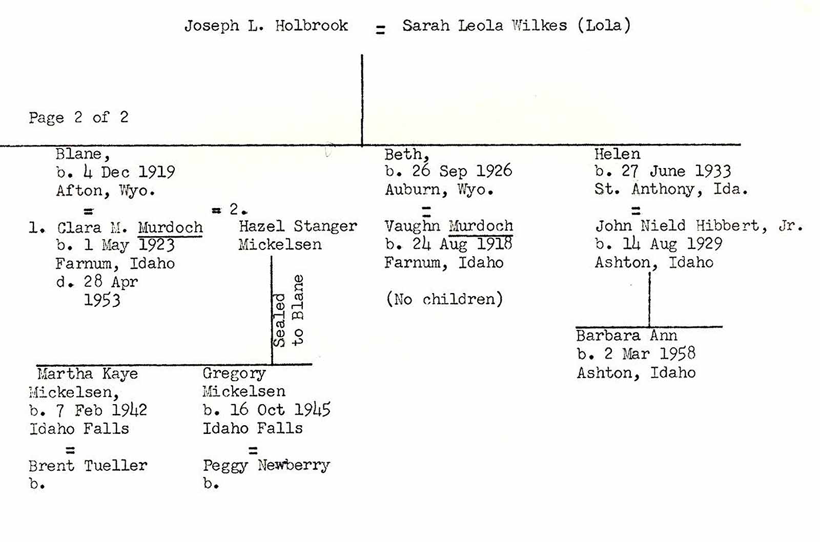 Blane Holbook: "I was born 4 December 1919 at Afton, Lincoln County, Wyoming, the fourth child of Sarah Leola Wilkes and Joseph Lamoni Holbrook.