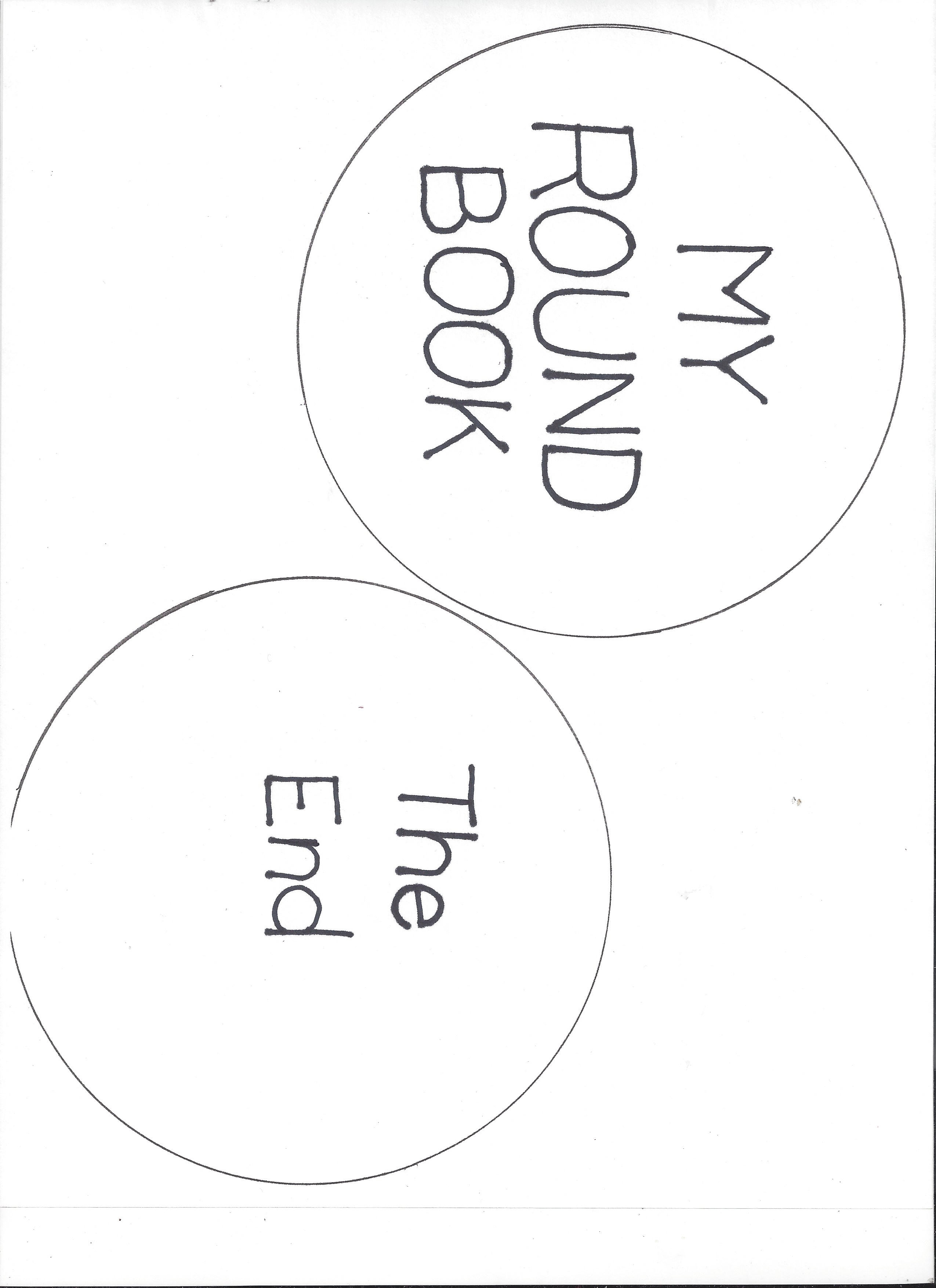 Today we can finish our round books by putting on a front and a back. The front says, MY ROUND BOOK and the other one says, "The End". Put the pages in the right order with the cover being first, then the pancake and the drum; next is the donut and the plum and then the puppy and the ladybug, and then finish with the page that says the end. Have it stapled on the right side, or on the top and you are finished! Such a nice, pretty little book you have made!