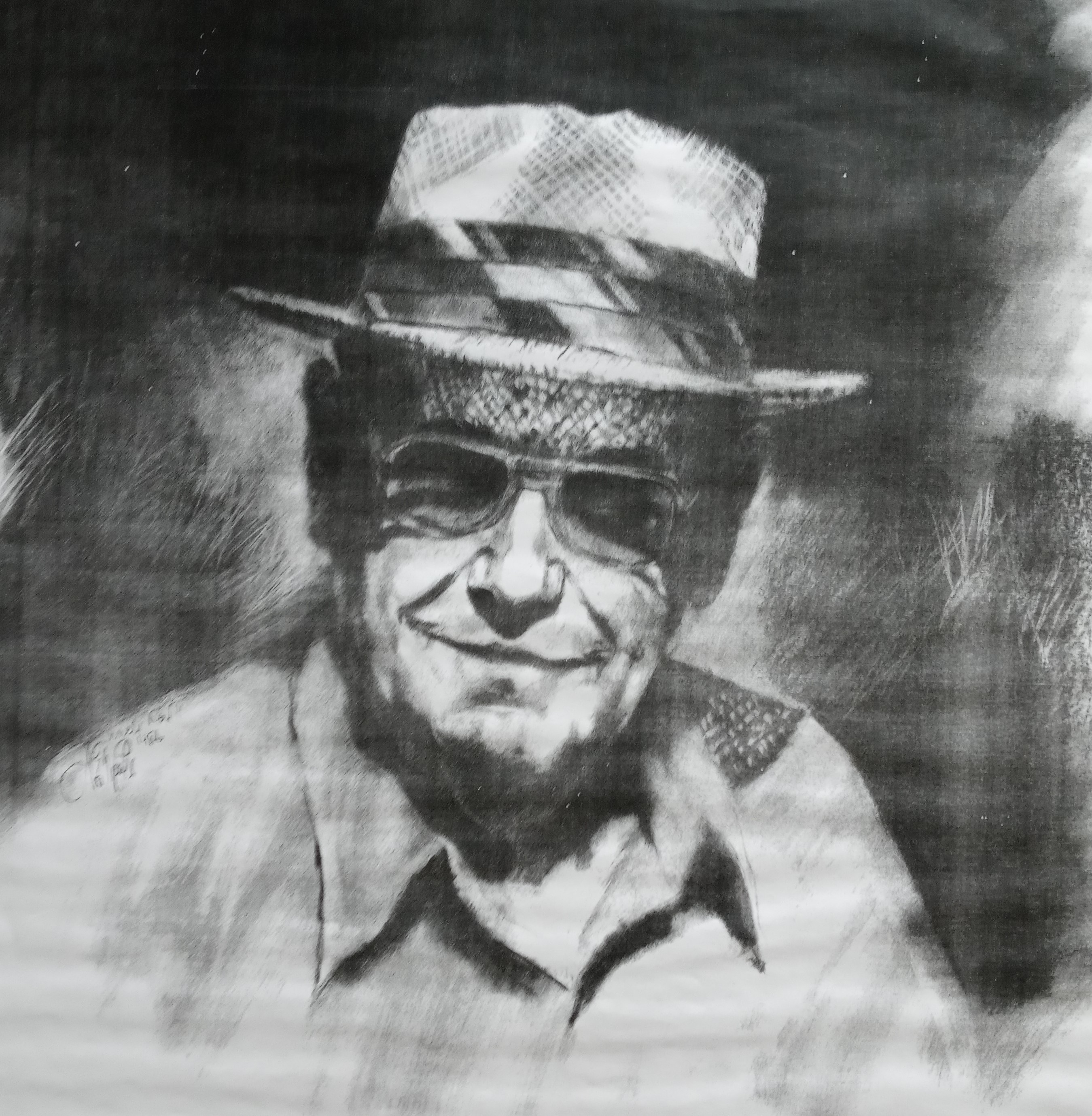 When Cameron was about three, his Gradma Marie Waite had come to our home in Heyburn, with a large charcoal drawing of Grandpa Waite wearing a straw hat, drawn by Laron's cousin, Norman Waite. She set it on the floor, under the side windows of the living room.